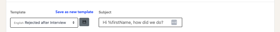 This format only works for the email subject. If you want to include the candidate’s name in the email body, use the @tag format instead.